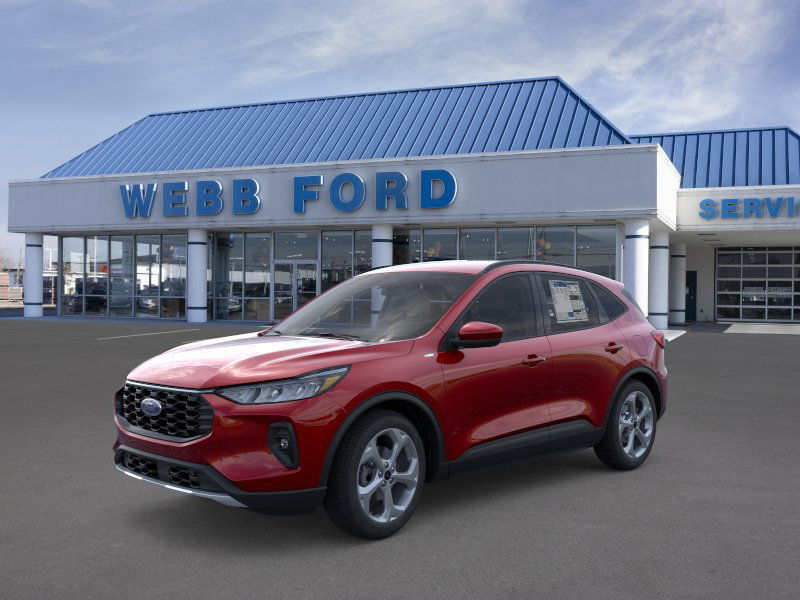 Escape Hybrid ST-Line Select, 4D Sport Utility, 2.5L iVCT, eCVT, AWD, Rapid Red Metallic Tinted Clearcoat, Ebony w/Heated Vinyl/Cloth Front Sport Contour Bucket Seats, ABS brakes, Adaptive Cruise Control w/Stop-and-Go, Alloy wheels, Compass, Connected Navigation, Electronic Fuel Door Release, Electronic Stability Control, Equipment Group 400A, Ford Co-Pilot360 Assist+, Front dual zone A/C, Heated door mirrors, Heated front seats, Illuminated entry, Intersection Assist, Low tire pressure warning, Neutral Towing Capability, Pedestrian Alert Sounder, Power Liftgate, Predictive Speed Assist, Rear Parking Sensor, Rear-View Camera, Remote keyless entry, SYNC® 4 w/Enhanced Voice Recognition, Tech Pack #1, Traction control, Wheels: 18″ Rock Metallic Painted Aluminum.